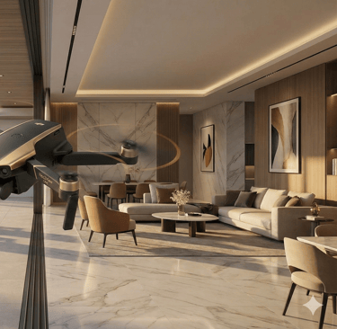 Olhe atentamente para a imagem acima. O que você vê não é apenas um drone voando; é a representação visual do maior diferencial competitivo na apresentação de imóveis de luxo hoje: a fluidez.